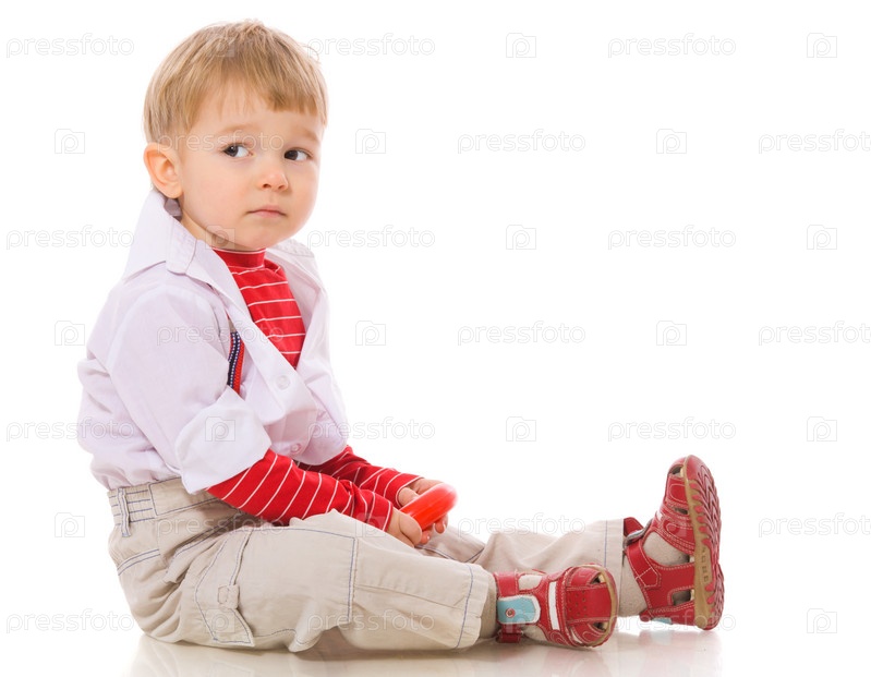 Маленький мальчик, сидящий на белом фоне