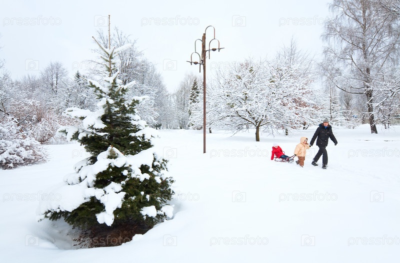 Мама с детьми в городском парке