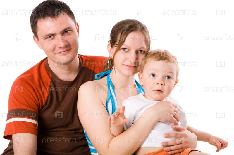 Счастливая молодая семья на белом фоне