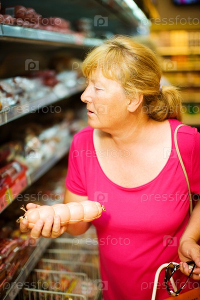 Пожилая женщина, делающая покупки в магазине