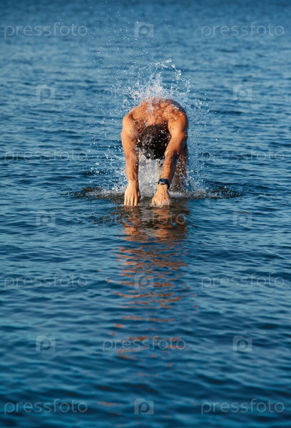 Мужчина плавает в море