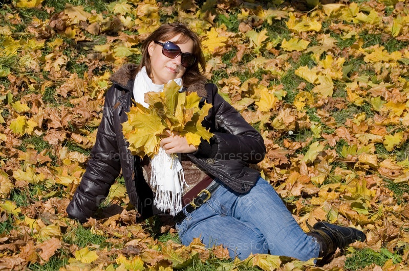 Портрет молодой девушки с осенними листьями