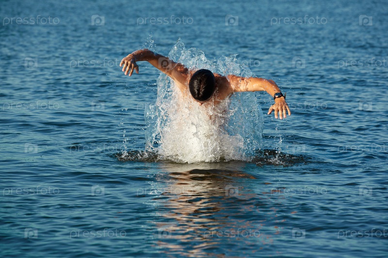 Мужчина плавает в море