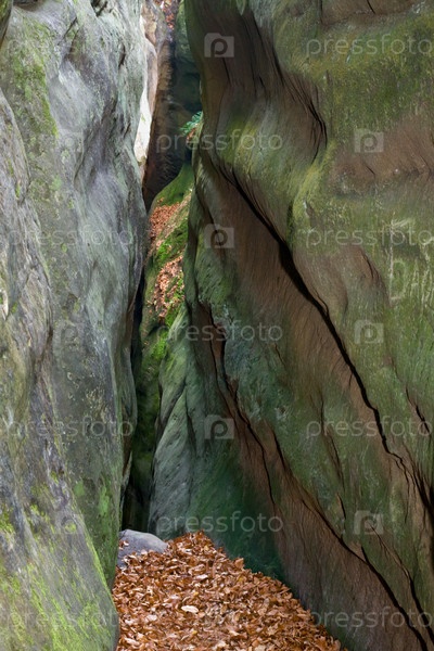 Большие высокие камни и осенняя листва