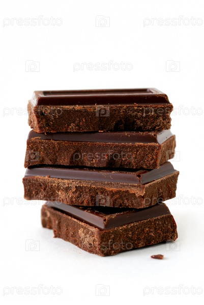 Кусочки шоколада на белом фоне