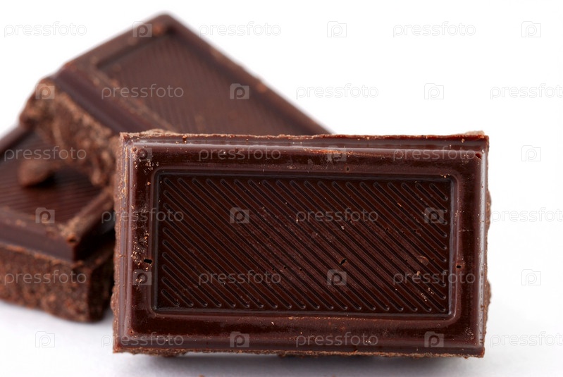 Кусочки шоколада на белом фоне
