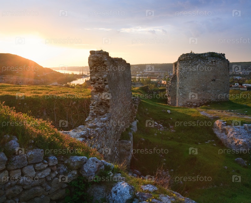 Древние развалины на фоне красивого заката, Украина
