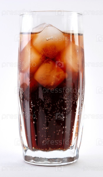 Стакан газировки с кубиками льда