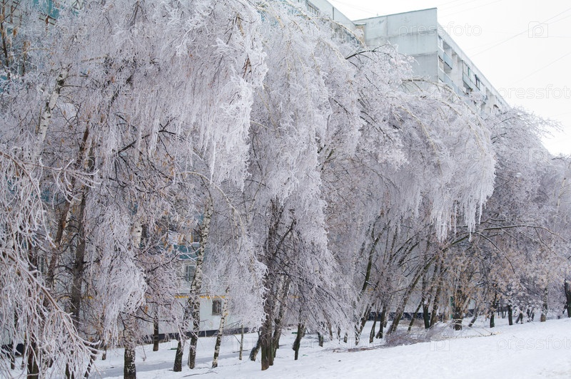 Ветви деревьев, покрытые ледяной коркой
