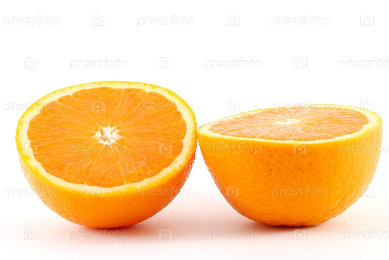 Половинки апельсина на белом фоне
