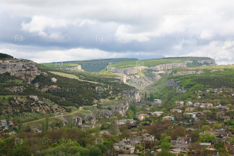 Панорама города Бахчисарай на фоне пасмурного неба
