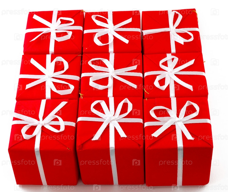 Красные коробочки на белом фоне