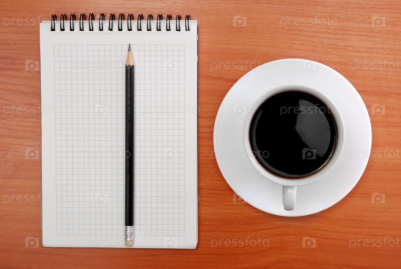 Карандаш, блокнот и чашка кофе