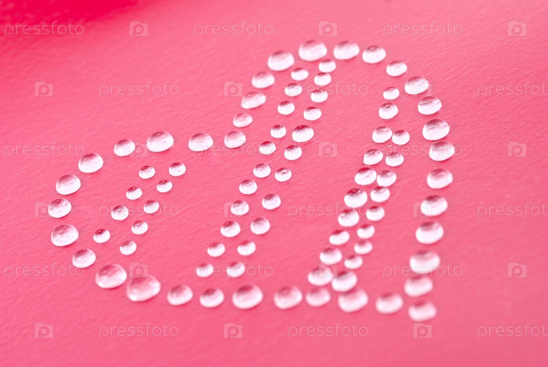 Сердце из капель воды на розовом фоне