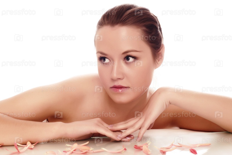 Красивая женщина в лепестках цветов