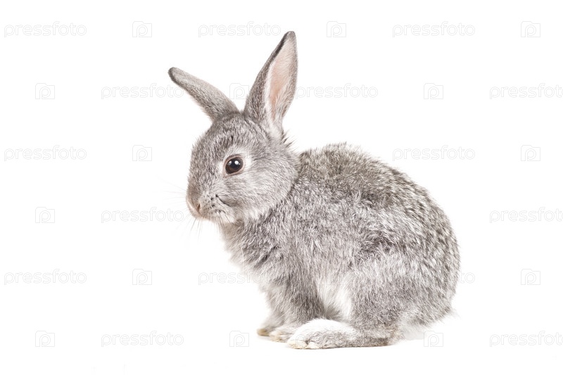 Очаровательный серый кролик на белом фоне