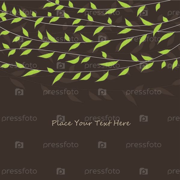 Открытка с зелеными листьями на коричневом фоне