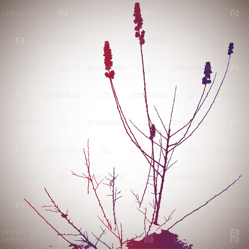 Розово-фиолетовые силуэты веток на сером фоне