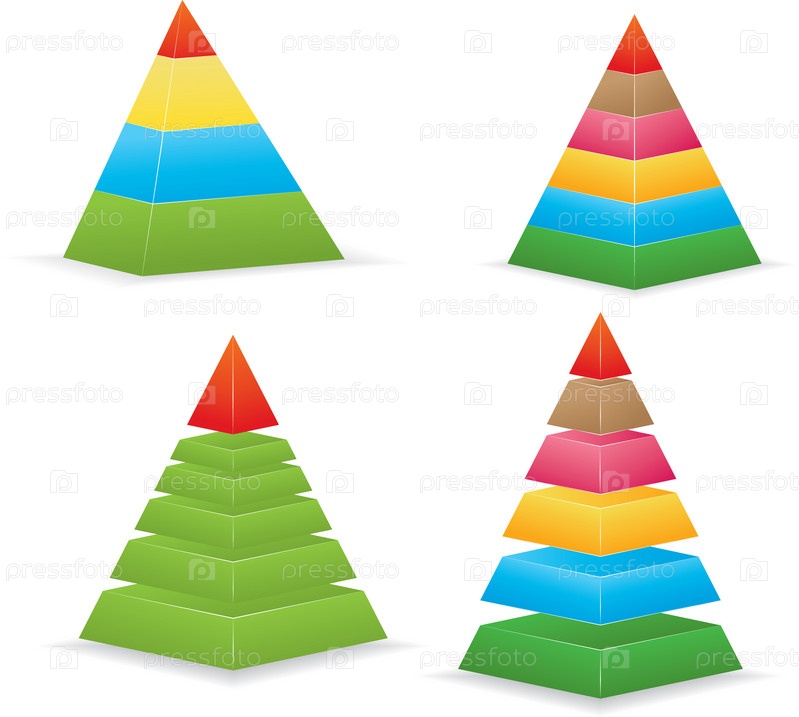 Разноцветные пирамиды на белом фоне