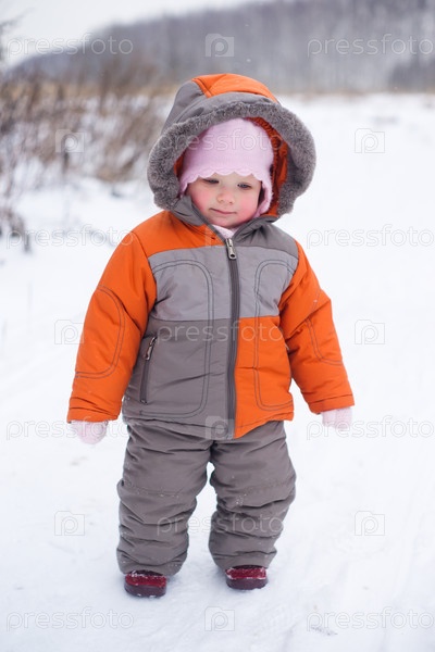 Портрет маленькой девочки на природе зимой