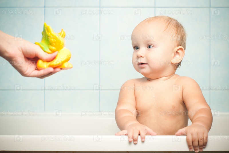 Рука протягивает ребенку резиновую игрушку