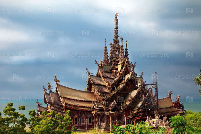 Строительство нового огромного деревянного буддистского Храма Святилище Истины, Паттайя, Таиланд