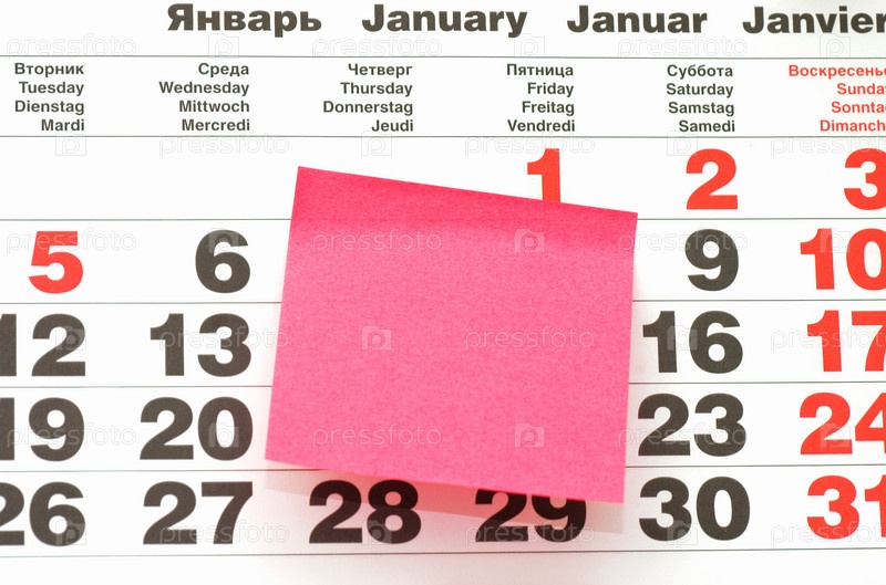 Розовый стикер на странице календаря крупным планом