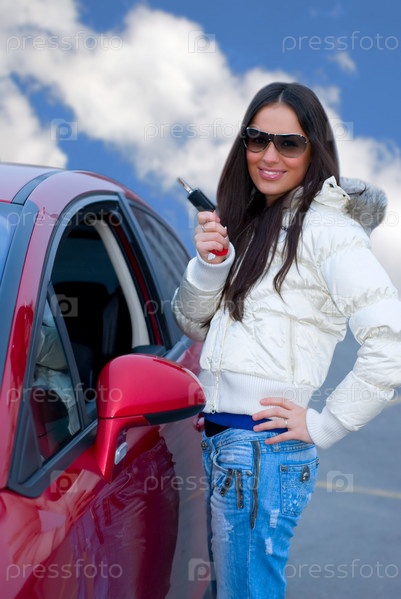 Девушка, стоящая у автомобиля