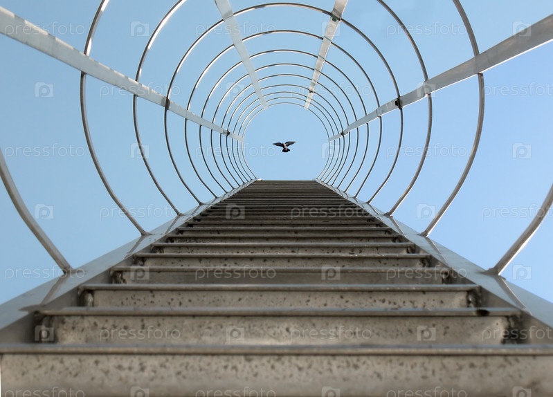 Крытая лестница и птица на фоне голубого неба