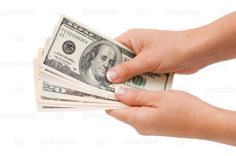 Руки с долларами на белом фоне