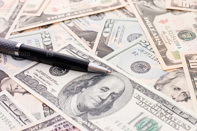 Ручка на фоне из долларовых купюр крупным планом