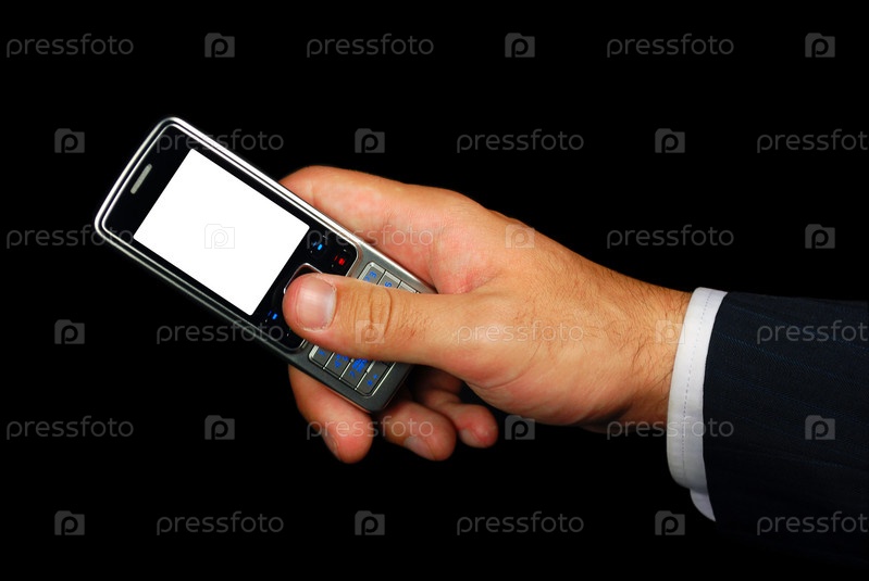 Мобильный телефон в руке на черном фоне