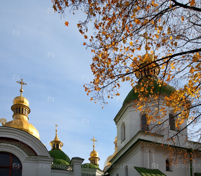 Софийский собор на фоне голубого неба в Киеве