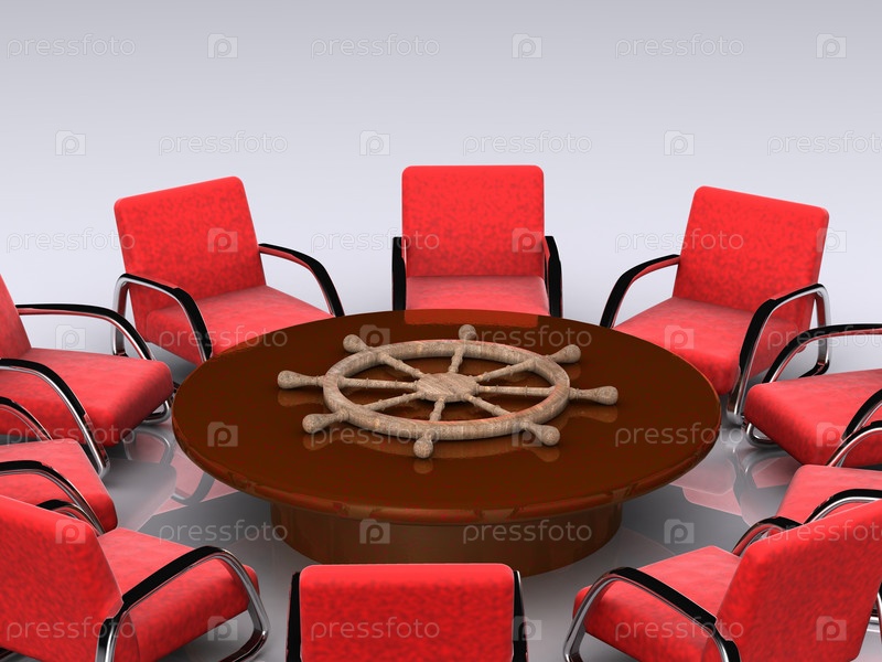 Стол, кресла и штурвал
