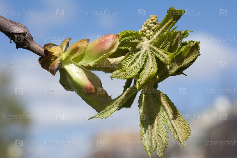 Молодые листочки каштана