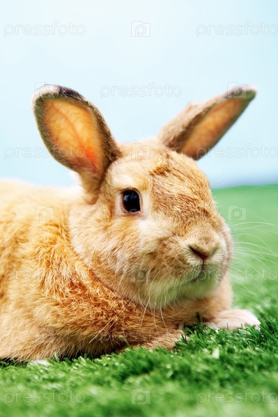 Рыжий кролик на траве