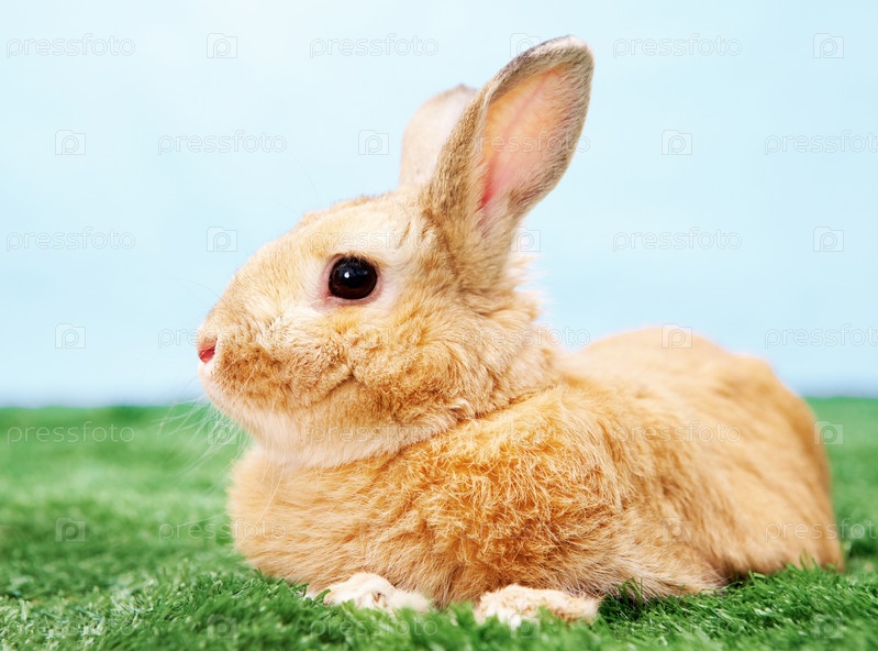 Рыжий кролик на траве