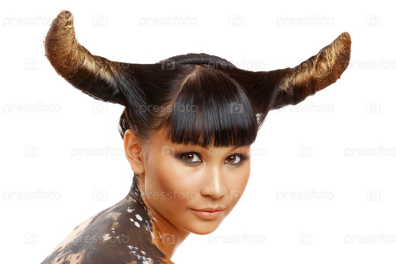 Женщина-корова на белом фоне
