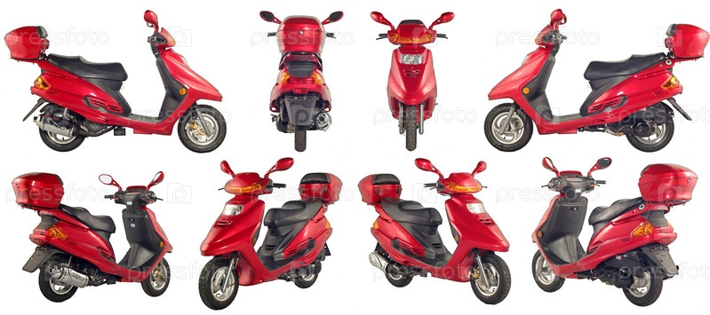 Сборник фотографий скутеров и мотоциклов на белом фоне.Некоторые изображения из разных сокращений в одном файле