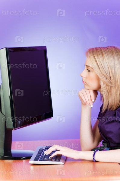 Красивая женщина за компьютером