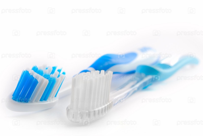Зубные щетки на белом фоне