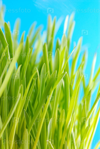 Зеленая травка на голубом фоне