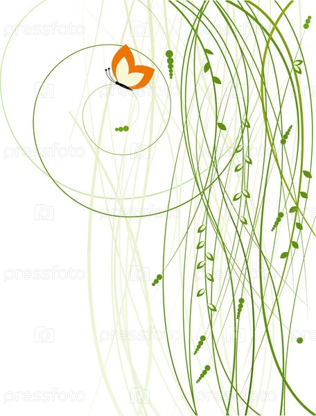 Абстрактное изображение растений и бабочки на белом фоне