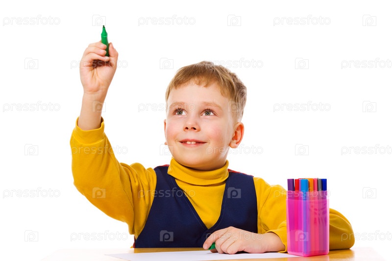 Мальчик рисует фломастерами