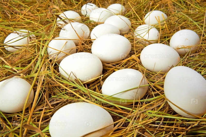Белые яйца на соломе