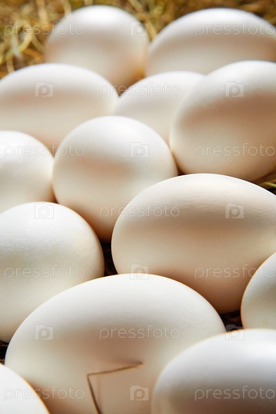 Белые яйца на соломе