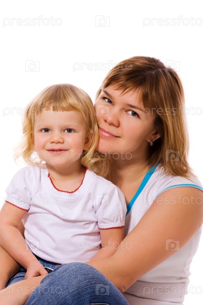 Мать с дочерью на белом фоне
