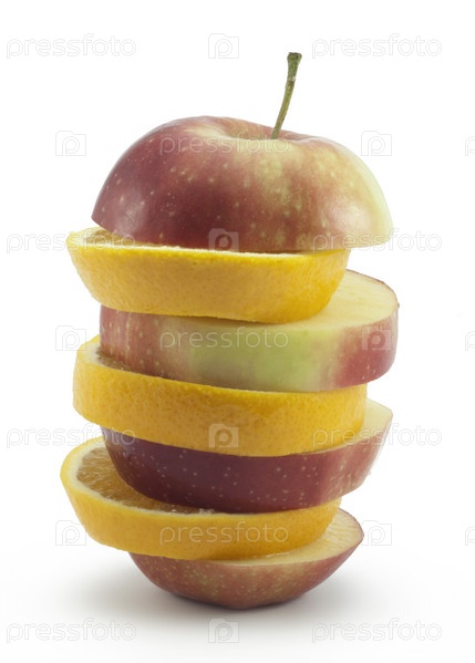 Яблоко и лимон на белом фоне