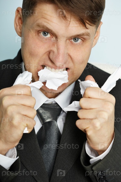 Менеджер в гневе рвет бумагу зубами