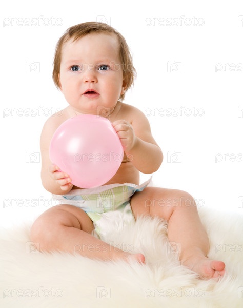 Годовалая девочка держит в руках шарик